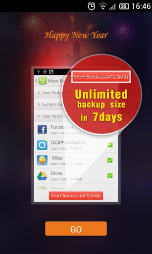 - Backup contacts, messages, GO launcher settings, system setting and apps